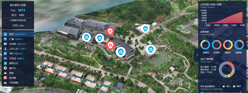 單景區采用GIS+三維空間建模,全域范圍采用GIS+2D建模,最大程度還原景區真實場景,一張圖多維度管控。